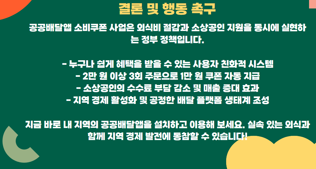 공공배달앱 소비쿠폰 사업은 누구나 쉽게 혜택을 누릴 수 있는 정부 지원 정책입니다. 배달앱을 자주 이용하는 소비자라면 공공배달앱을 통해 실속 있게 외식하고, 소상공인 지원에도 동참할 수 있습니다.