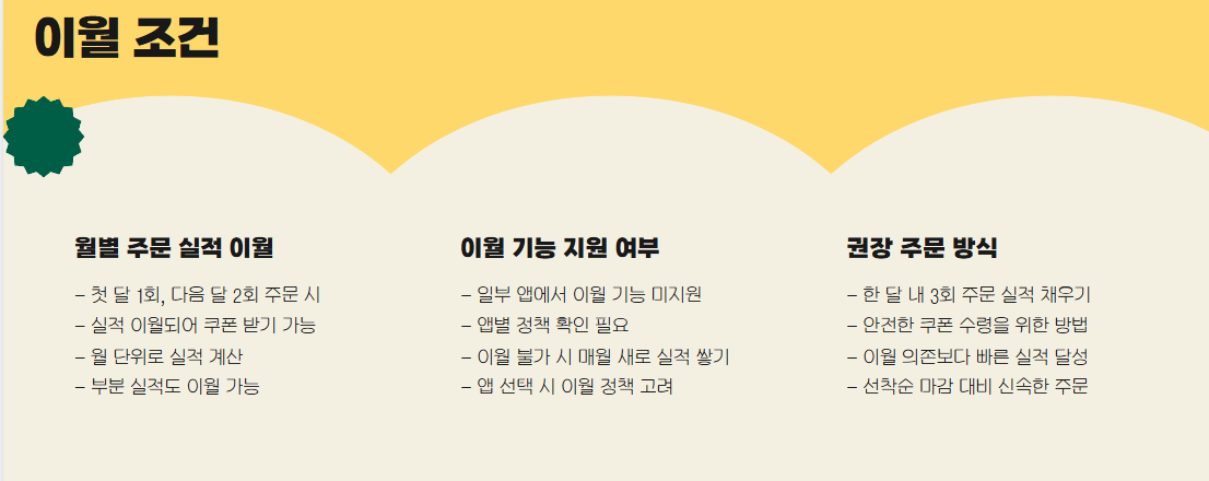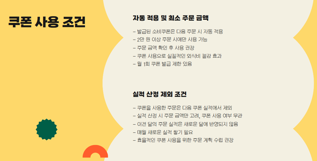 - 이미 쿠폰을 사용한 주문은 다음 쿠폰 실적 산정에서 제외됩니다.