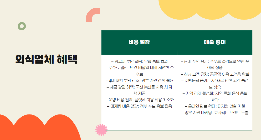 - 소상공인 혜택: 수수료 절감 및 순수익 증가