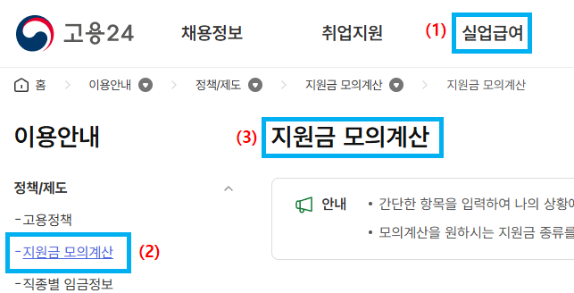 👉 실업급여 관련 검색 시 자연스럽게 모의계산 메뉴로 이동할 수 있어요.