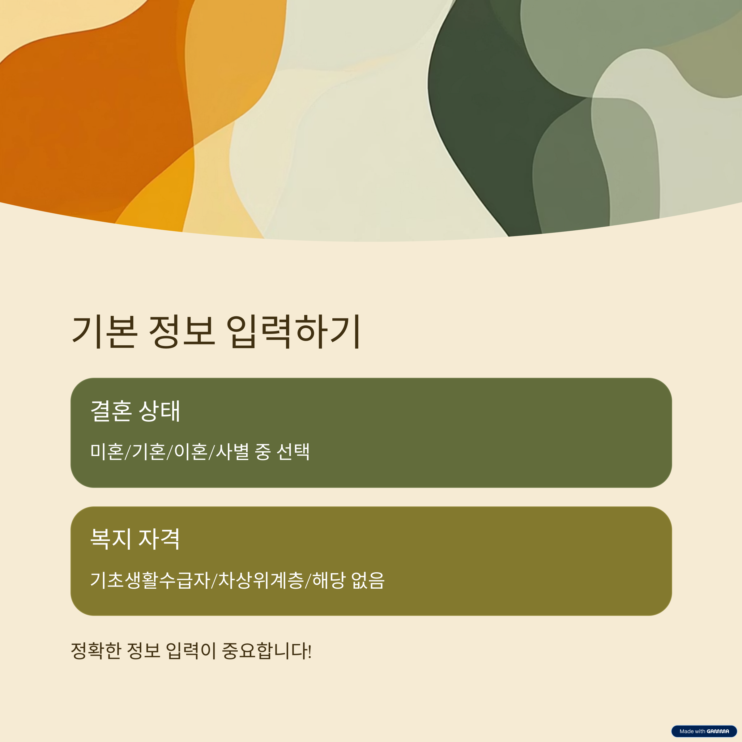 - 복지 자격 여부 (기초생활수급자/차상위계층/해당 없음)