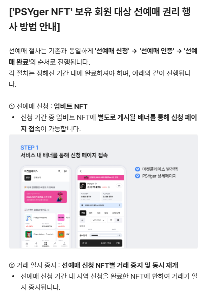 PSYger NFT 선예매는 업비트 NFT 플랫폼에서 싸이의 공식 NFT인 'PSYger NFT'를 소유한 팬들에게만 주어지는 우선 예매 혜택입니다.